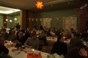 Berliini eestlaste ja Eesti sõprade pidu Charlottenburgis Lietzensee koguduse majas möödus meeleolukalt. Lisaks traditsioonilistele verivorstidele ja eri sorti hapukapsastele pakkus õhtupoolik saalitäiele rahvale mitmekesist meelelahutusprogrammi: esinesid Andreas Melts viiulil ja Maarja Ansorg klaveril, Berliini Eesti Kooli lapsed laulude-tantsude ja omatehtud luuletustega ning peo lõpupoole oli avatud nn vabalava, kus astusid pillilugudega üles Leele, Marta ja Alexander. Jõuluvanal ja jõuluinglil oli palju tööd – sel aastal tuli jagada peaaegu 50 jõulupakki! Täname kõiki kaasatoodud maitsvate roogade eest, õhtujuhti Mari Alavere, kogu korraldus- ja köögitiimi ning fotograafe – Ingrid Hübscher, Sebastian Stotz ja Katrin Viil!