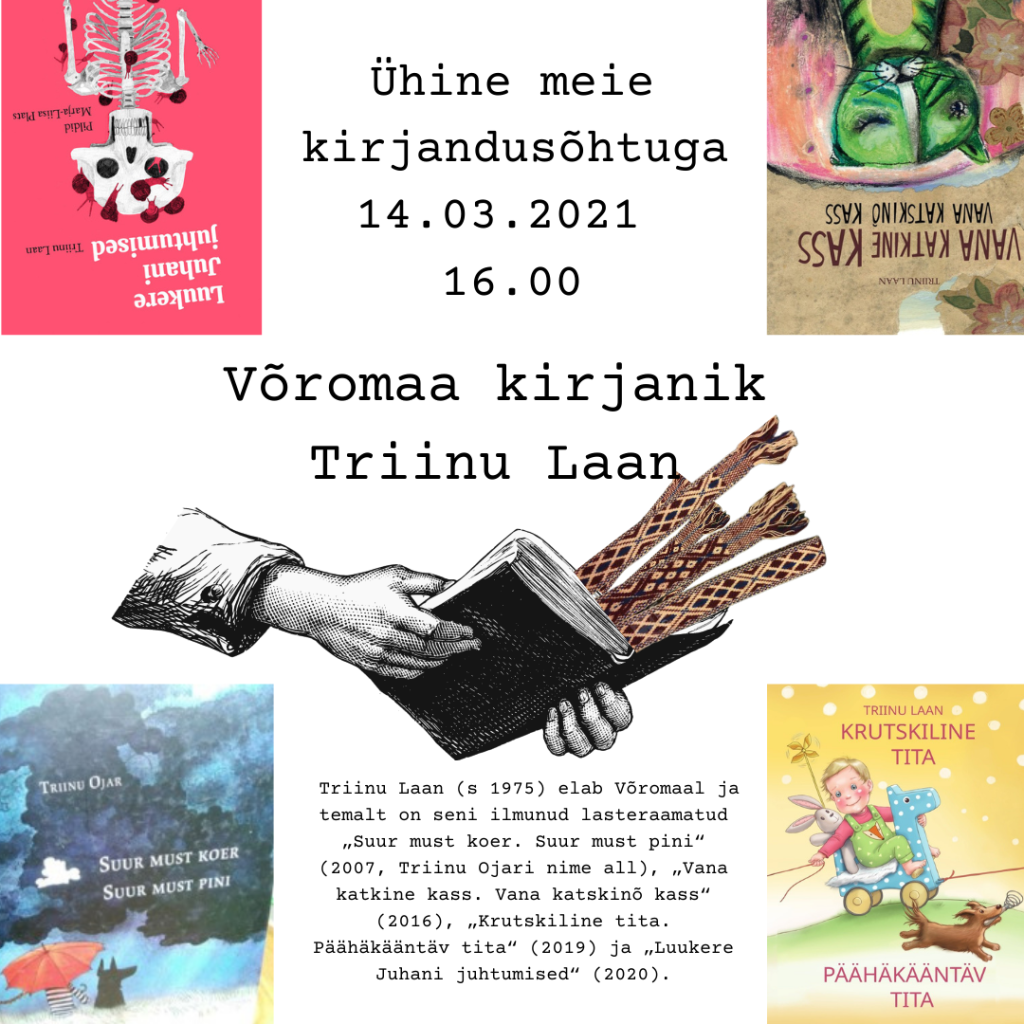 Triinu Laan (s 1975) elab Võromaal ja temalt on seni ilmunud lasteraamatud „Suur must koer. Suur must pini“ (2007, Triinu Ojari nime all), „Vana katkine kass. Vana katskinõ kass“ (2016), „Krutskiline tita. Päähäkääntäv tita“ (2019) ja „Luukere Juhani juhtumised“ (2020). (Teatame rõõmuga, et Triinu Laan sai oma raamatu „Luukere Juhani juhtumised” eest Tartu kirjanduspreemia.)