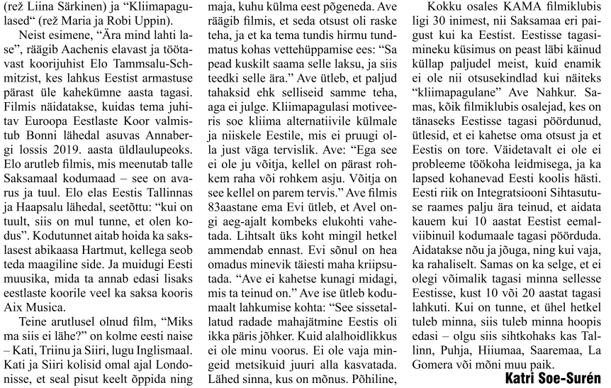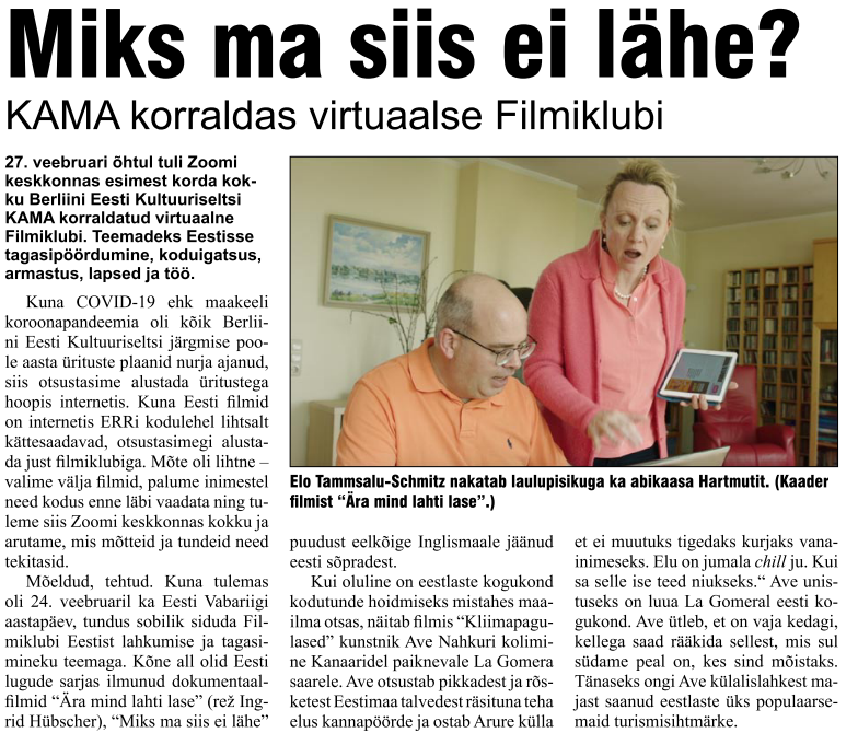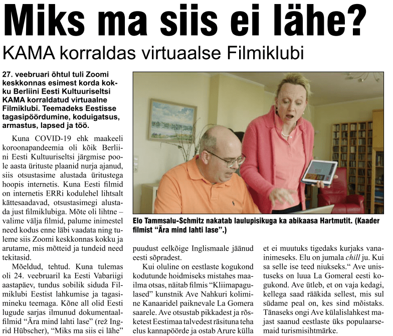 Kama tegemisi kajastab ka Saksamaa eestlaste ajaleht Eesti Rada. (Kui on soov ajalehte tellida, võta ühendust toimetajaga karin.aanja@gmail.com)