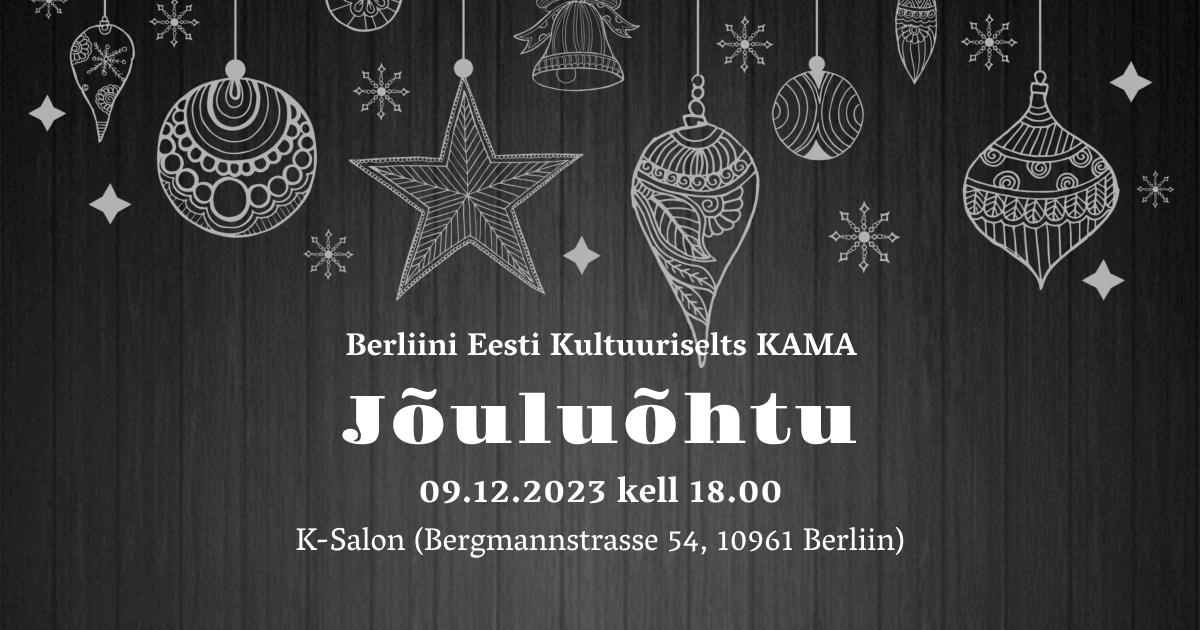 KAMA jõuluõhtu 09.12.2023 kell 18.00 Lähem info ja registreerimine Berliini Eesti Kultuuriselts KAMA jõuluõhtule siin